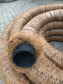 kokos fibre sømløst vevd som et tykt filter rundt drensrøret.